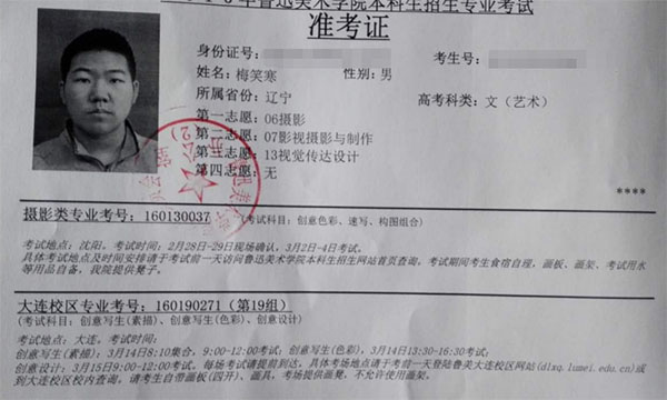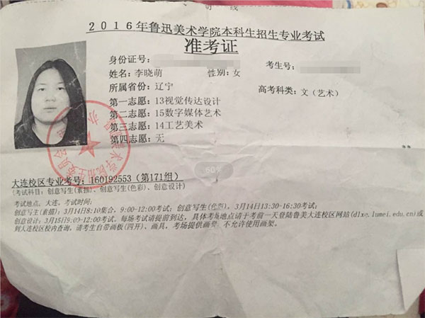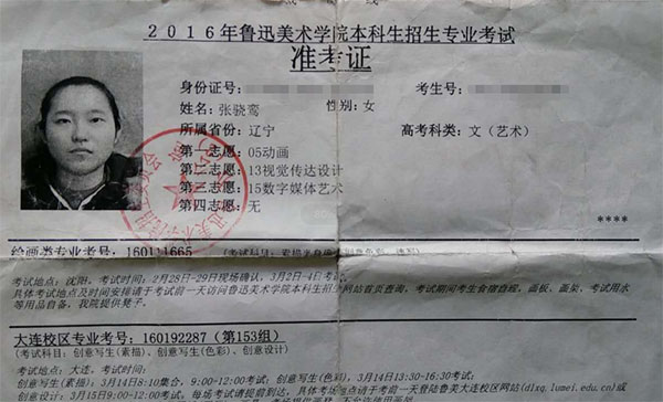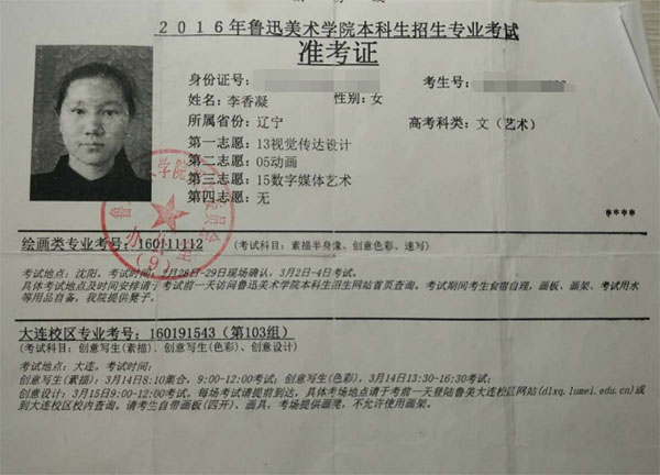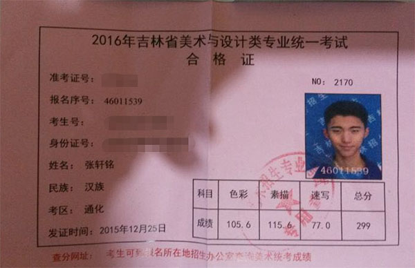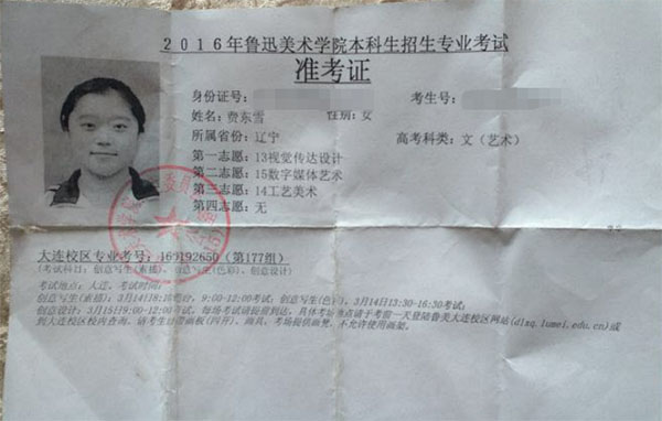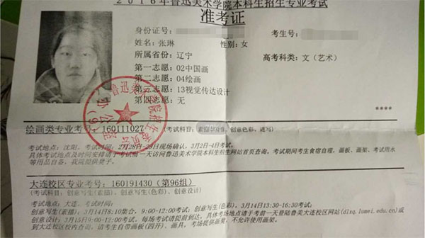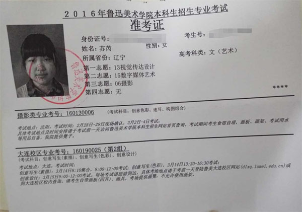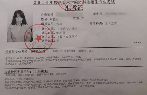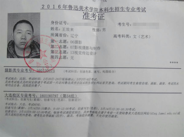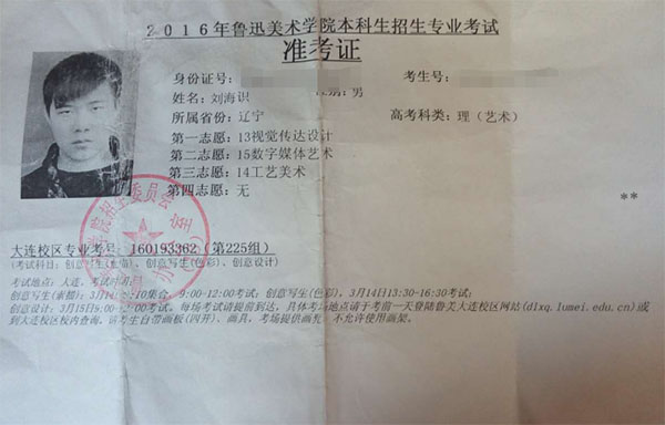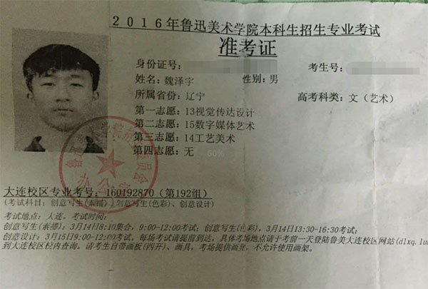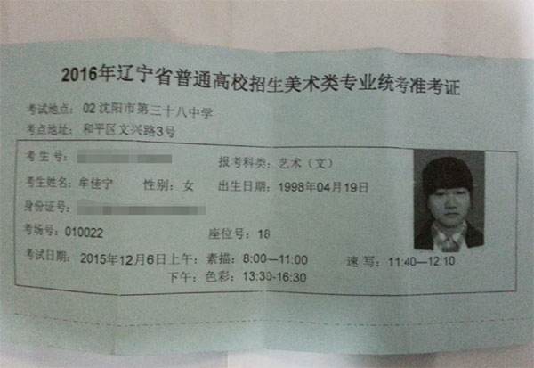 2016学生准考证